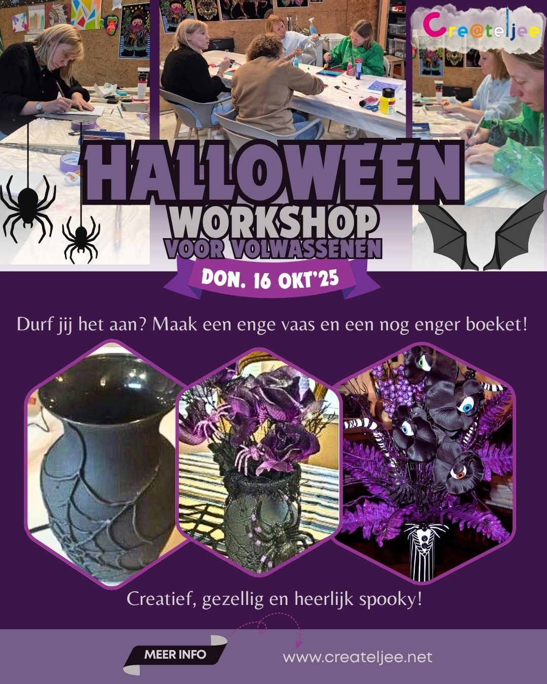 Een gezellige en creatieve avond vol plezier, inspiratie en Halloween-sfeer – perfect om even te ontspannen en iets unieks te maken.