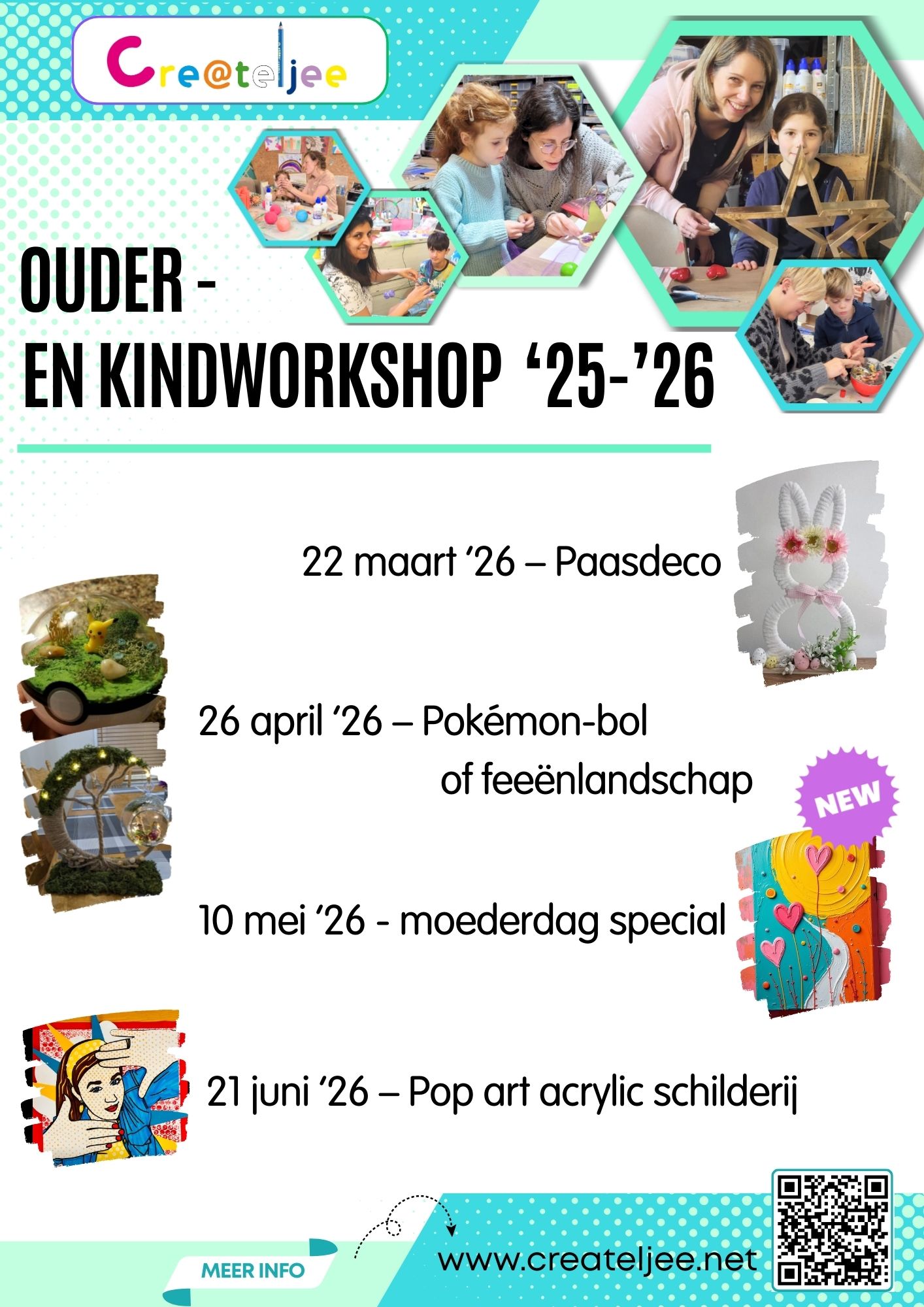 Zoals altijd ontdekken we samen nieuwe knutseltechnieken, werken we rond verrassende thema’s en maken we tijd voor écht samen creëren. Een heerlijk moment om even weg te zijn van de drukte en samen iets moois te maken!