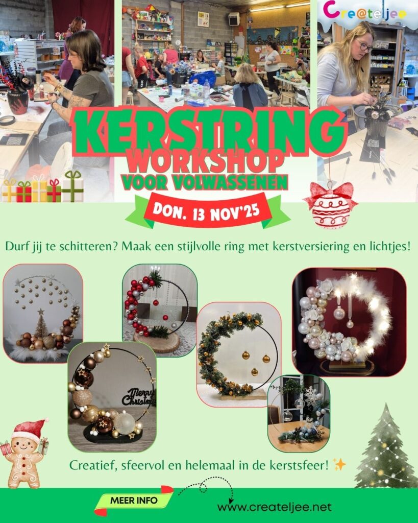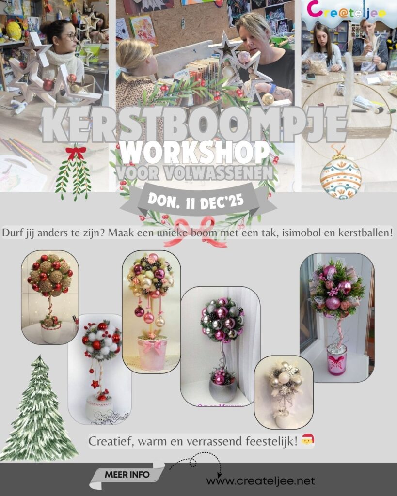 🎄 Kerstworkshop voor volwassenen: Kerstboom met Isimobol ✨ Op donderdag 11 december 2025 (19u–21u) organiseert Cre@teljee een gezellige kerstworkshop voor volwassenen, helemaal in het teken van de feestdagen! 🎅 Tijdens deze workshop maak je een originele kerstboomdecoratie met een Isimobol, tak, bloempot, lint en kerstversiering.Je kiest zelf de kleuren en afwerking – van natuurlijke tinten […]