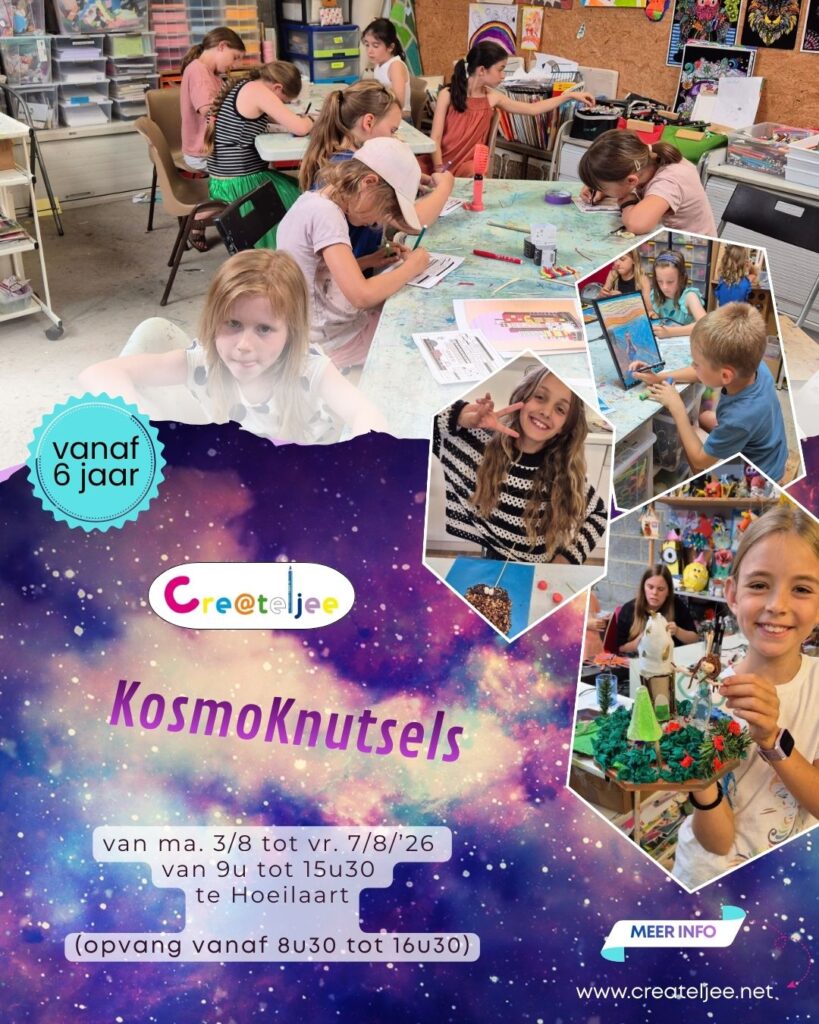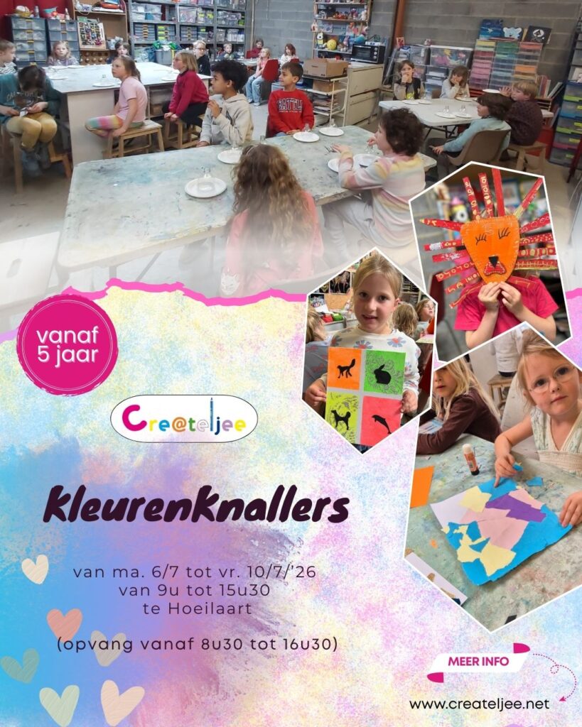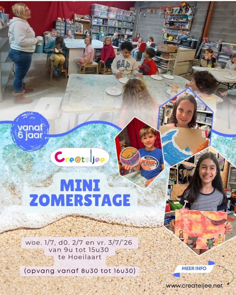 🌞 Zomerworkshops 🌴🎨 Voor creatieve kinderen vanaf 6 jaar Tijdens deze losse zomerse workshopdagen bij Createljee sluiten we de vakantie creatief af!Drie dagen lang duiken de kinderen in zomerse knutselprojecten rond vakantie, zon, reizen en ontspanning. Elke dag staat op zichzelf, met ruimte om te maken, ontdekken en genieten in een kleine, gezellige groep. 📅 […]